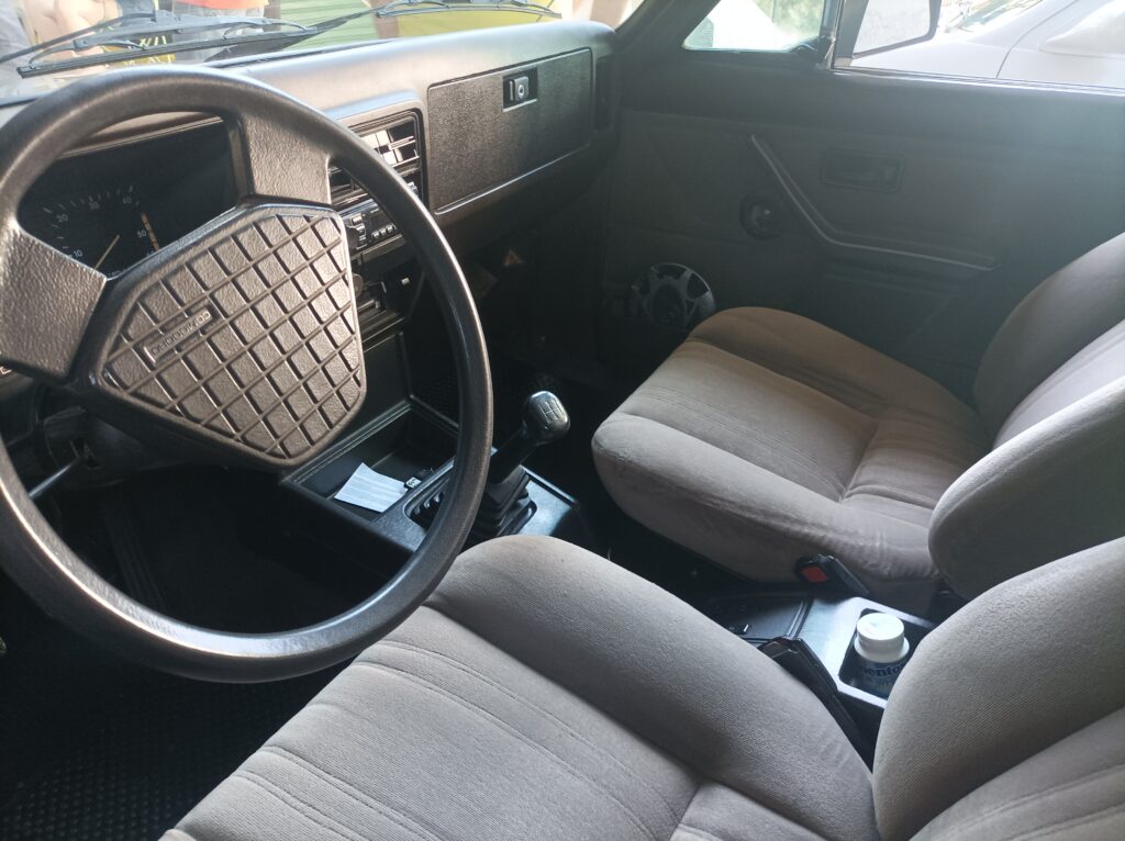 O Para-brisa foi trocado, mas o interior foi descoberto integro depois que foi tirada a capa que protegia os bancos.